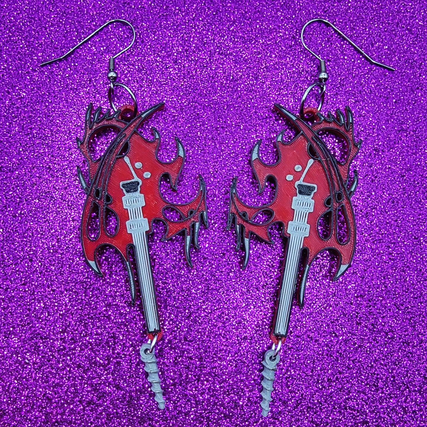 Driller Killer Horror Movie Statement Earrings 3D Printed