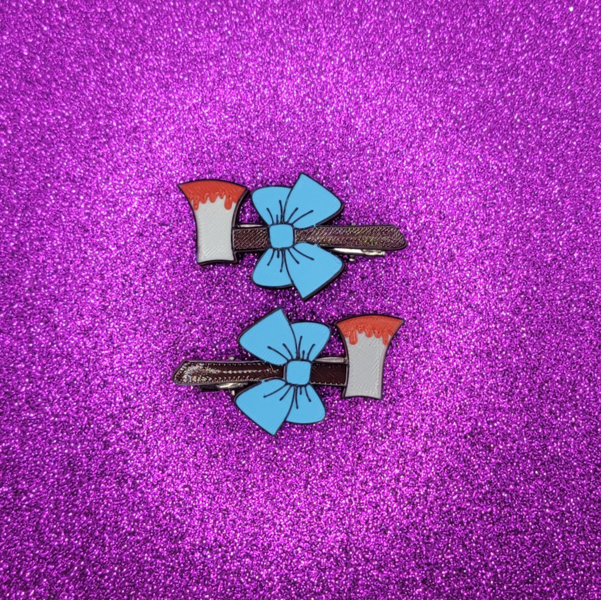 3d printed designs on silver alligator hair clips. Approximately 2.5" long.
